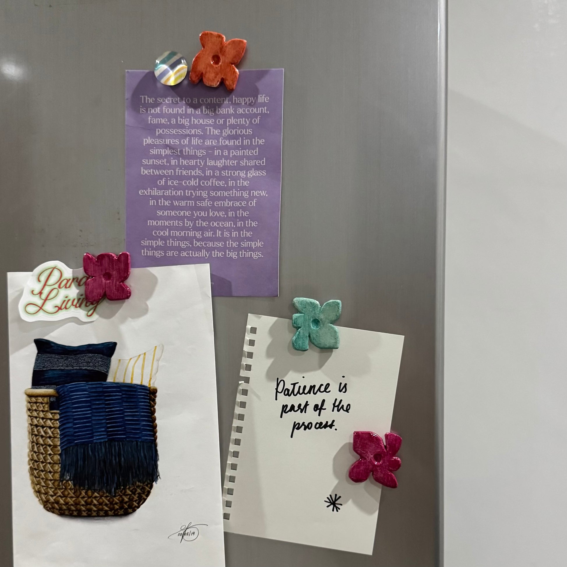 Use them to hold notes, reminders, and small mementos — a quiet adornment for your fridge, workspace, or sacred corner.